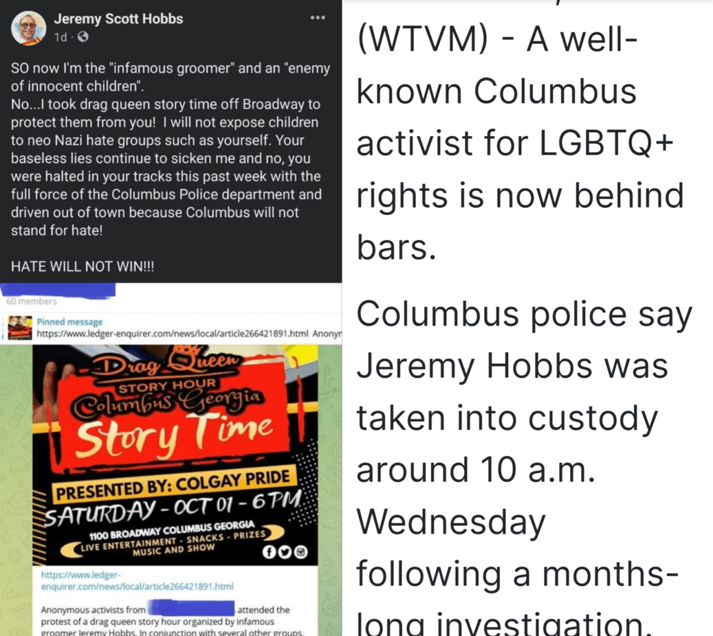 In October 2022 we faced down Columbus GA police in a parking garage who tried to protect a child sex ring from Proud Boys intervention. They deployed snipers and armored vehicles to intimidate us. We targeted Columbus, the hub of a large and well established child trafficking operation that includes businessmen, law enforcement, and PentagonContinueContinue reading “Columbus Pride Leader Arrested With Date Rape and Other Drugs”